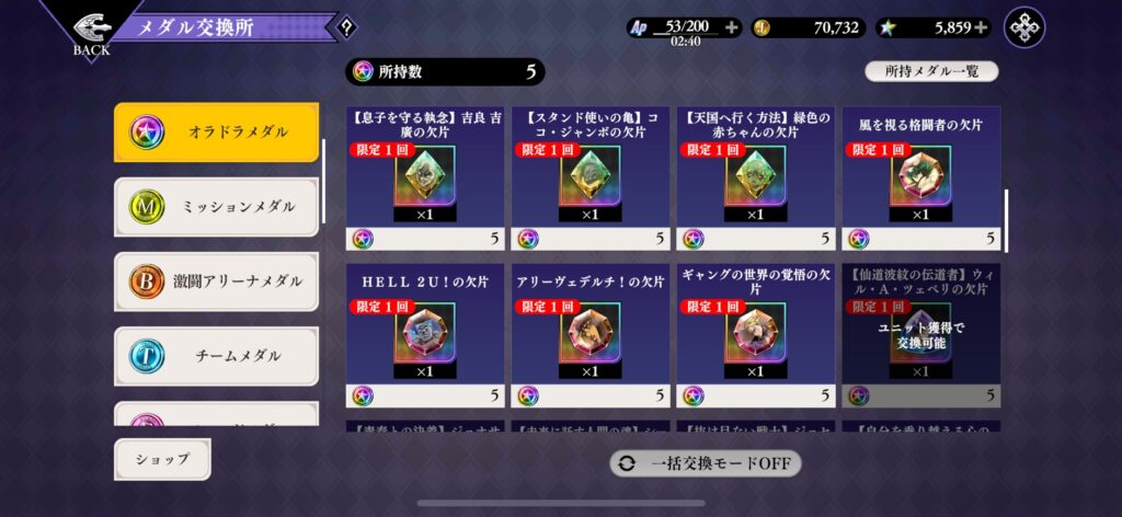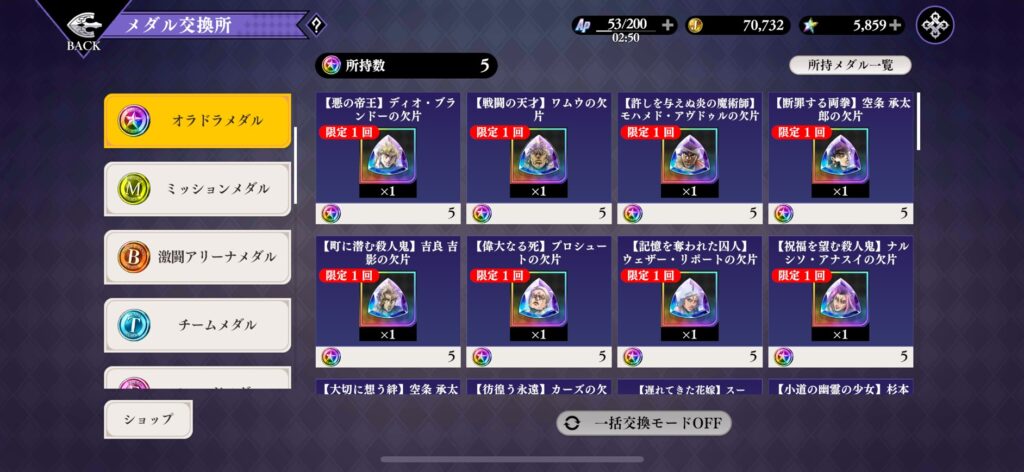 「オラドラメダル」は交換所でURレアリティの限界突破に使える素材と交換できます。