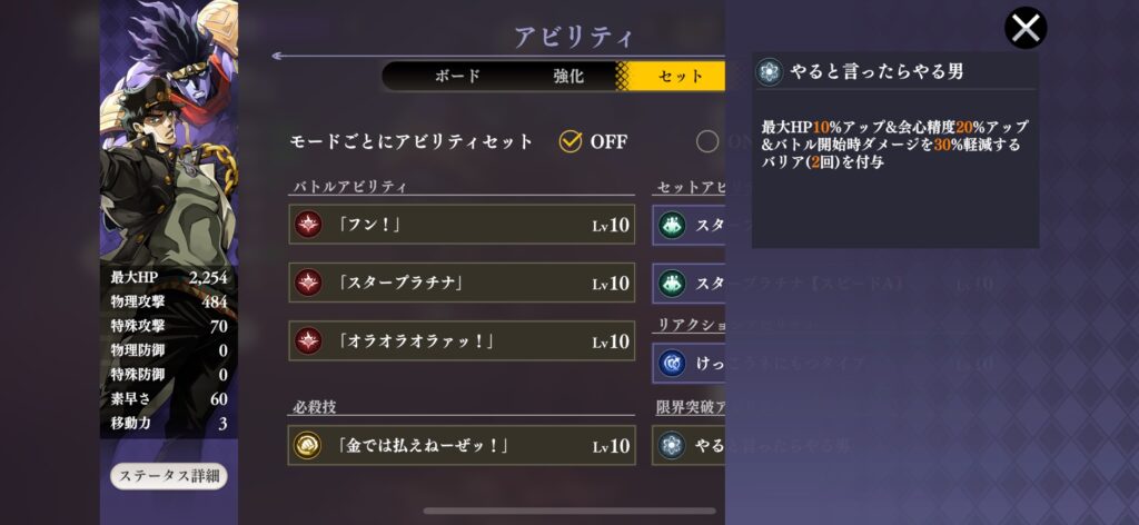 ・バリア付与しつつ、クリティカル発生率が伸びる承太郎