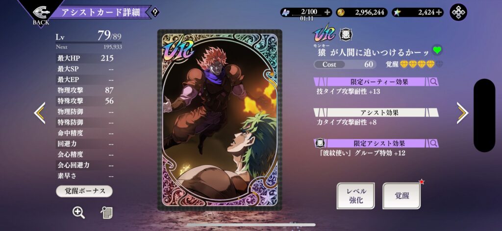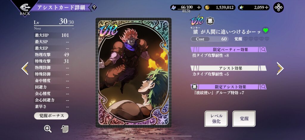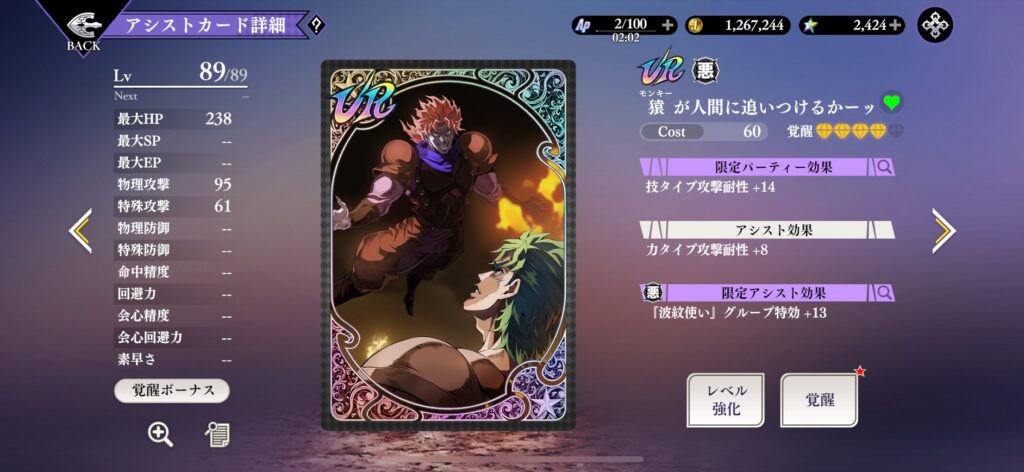 物理攻撃を大きく伸ばしてくれるアシストカードです。