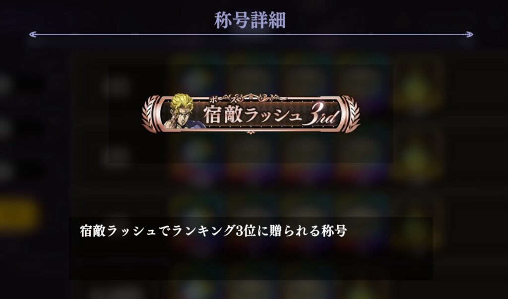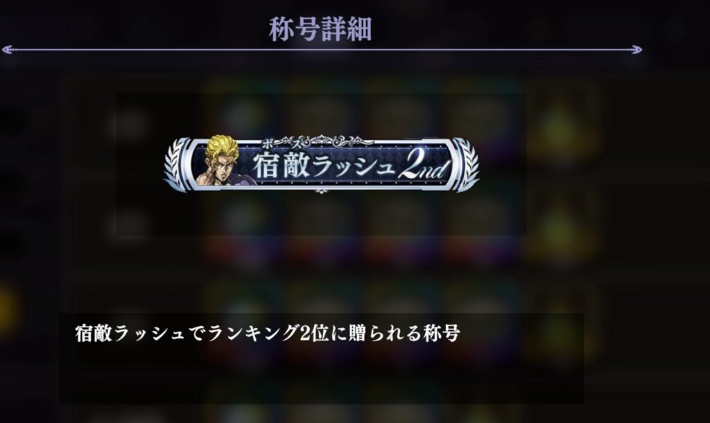 | 1位 | 1,500 | ・宿敵ラッシュ1ST ・宿敵ラッシュTOP10 ・宿敵ラッシュ挑戦者 | 15 |