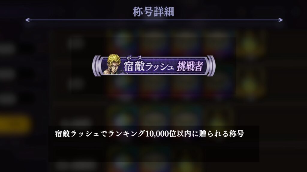 | 5,001-10,000位 | 500 | ・宿敵ラッシュ挑戦者 | 5 |