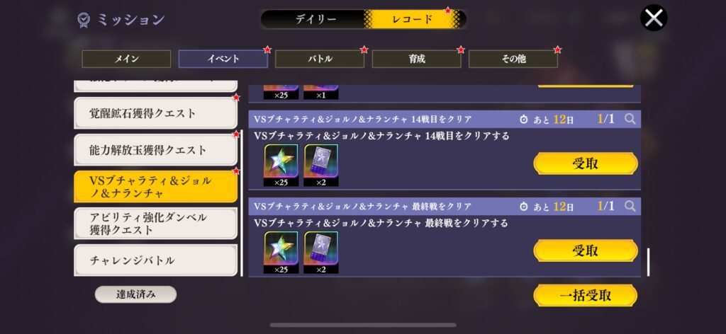 基本、ガチャで同じキャラを複数入手して限界突破しますが、本イベントを制覇することで好きなキャラの凸を増やせます。