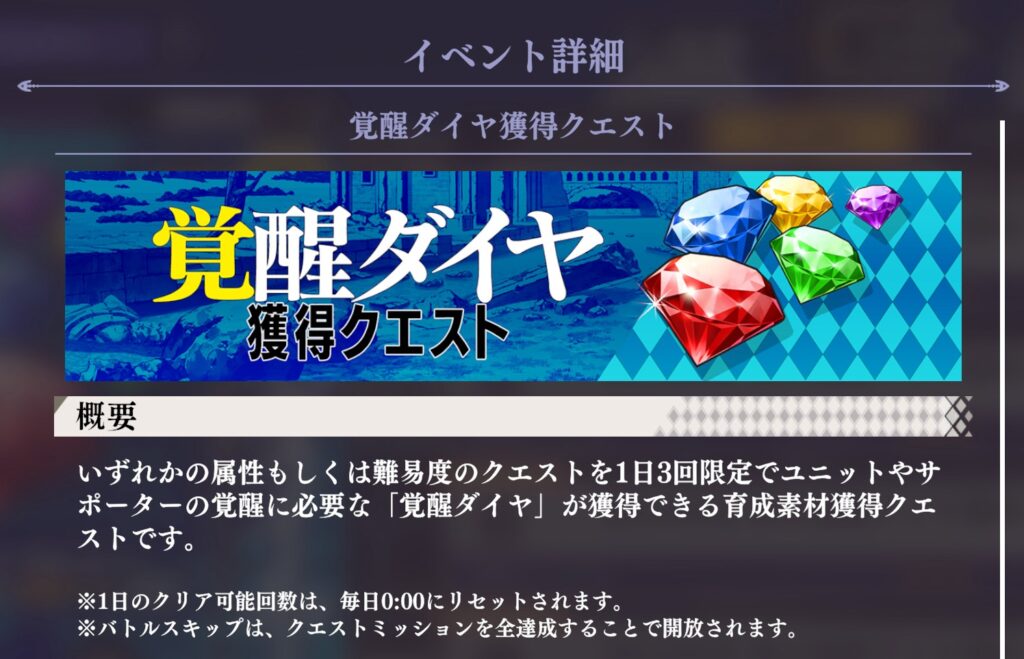 イベントクエスト「覚醒ダイヤ獲得クエスト」について