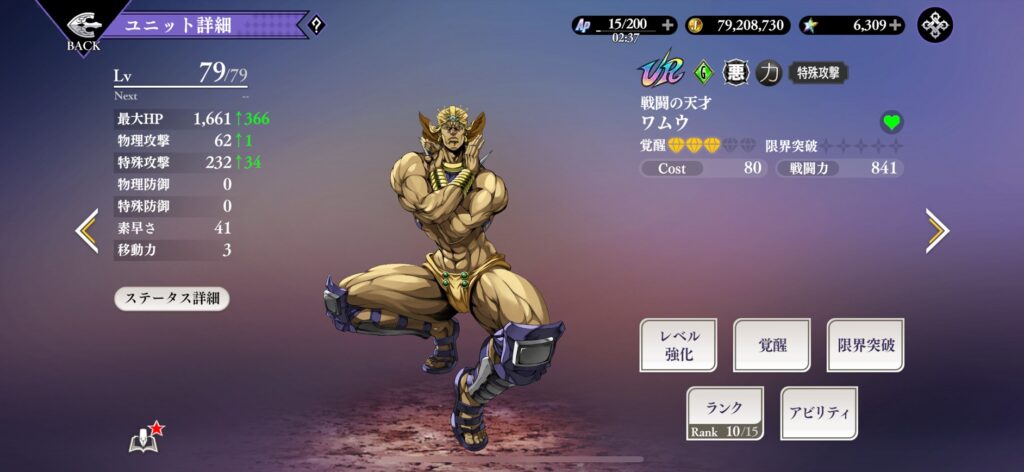 体タイプのUR【悪の帝王】ディオ・ブランドーの防御性能を引き上げることができます。